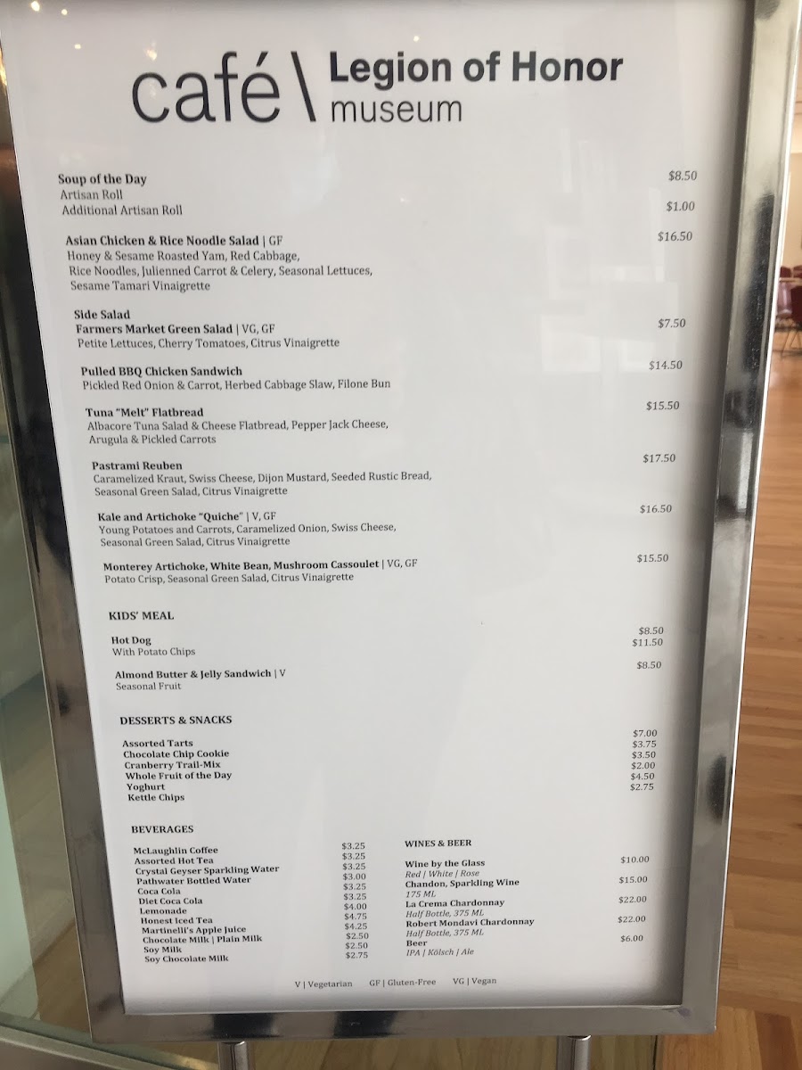 From a reviewer’s perspective, the menu at Legion Of Honor Café offers a thoughtfully curated selection that balances light café fare with more indulgent options. Standouts among the salads include the Roasted Beets & Capolavori Burrata and the classic Caesar Salad, while sandwiches such as the Norwegian Smoked Salmon Galette, Croque Monsieur, and Sicilian Capresse Sandwich provide satisfying variety. The comforting French Onion And Comté Au Gratin soup and specialties like Quiche Du Jour and Roasted Shredded Chicken & Squash Quesadilla add depth to the menu. Heartier choices like the Gustav Black Truffle Grill Cheese and unique burgers such as The Kiss and The Virgin cater to those seeking something more filling. Lighter bites and desserts-including Assorted Tarts and the Chocolate Chip Cookie-round out the experience, while beverages range from Thai Iced Tea and Hibiscus Lemonade to wines like Chandon and La Crema Chardonnay. Although prices are not prominently listed, the diverse offerings and creative naming make the menu both appealing and memorable, perfectly complementing the café’s museum setting.